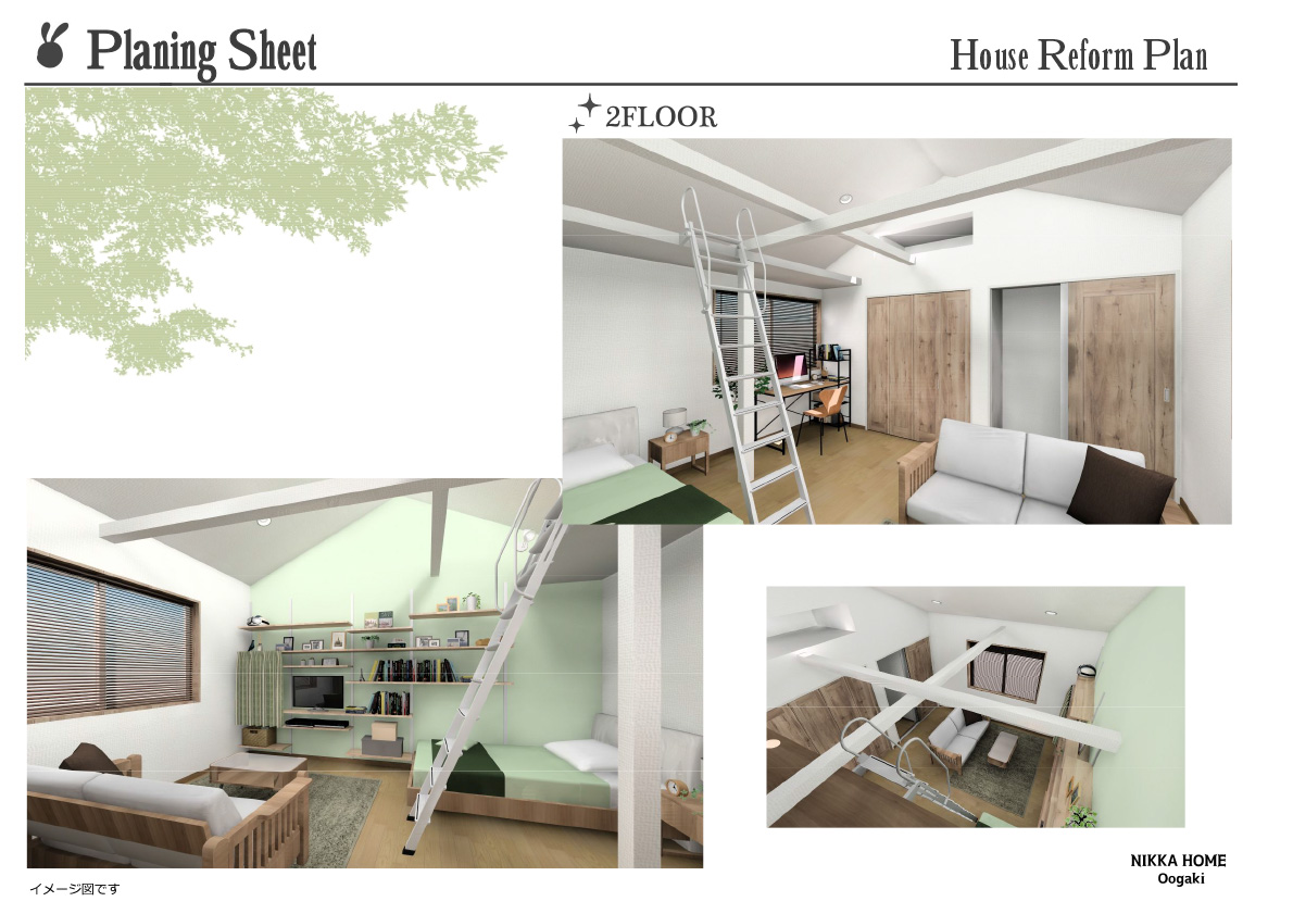 契約前に改装後のイメージパースを作成していただいたのですが、工事後壁紙の色・照明の配置の感じなどを事前にイメージできて安心できました。